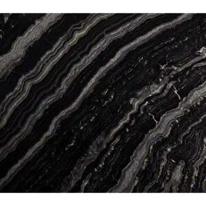 Agatha Black granite features a dark black background that partners beautifully with light gray and white wavy veins that add movement and depth. Both 2CM and 3CM polished slabs are available and suitable for a wide range of interior and exterior design projects. Create dramatic, bold, and beautiful granite countertops, kitchen islands, backsplashes, floors, and accent walls wherever a durable natural stone is preferred.