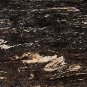 Cream, fawn, and beige blend for the backdrop of this coal-black-studded granite, imported from Brazil. Suitable for indoor and outdoor applications, in nearly any climate including those below freezing, these very versatile and stylish slabs should be used for residential and commercial applications including granite countertops, floors, and walls.